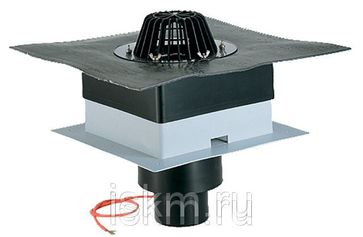 Воронка HL63.1H купить по низкой цене Доставка по России Кровельная воронка HL63.1H с листвоуловителем, с электрообогревом, с теплоизоляцией, с гидроизоляционным полимербитумным полотном 500*500мм, с возможностью изменения высоты монтажного короба от 100-160 мм, с вертикальным выпуском Кровельная воронка предназначена для отвода дождевой и талой воды с плоских кровель из профилированного настила в дождевую канализацию. Технические характеристики: Рабочая температура от -50 до +100°С Срок службы 50 лет Марка кабеля FS-B-2X Длина соединительного кабеля 0,8 м (3х0,75 мм2) Напряжение