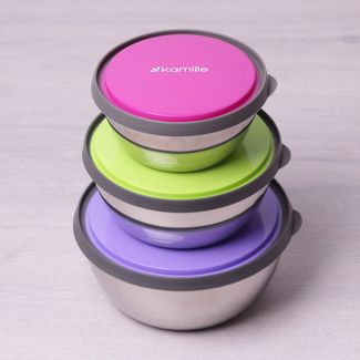 Закажите Набор емкостей Kamille 3шт из нержавеющей стали с пластиковыми крышками у компании Гермес интернет-магазин в России на портале Alloy: