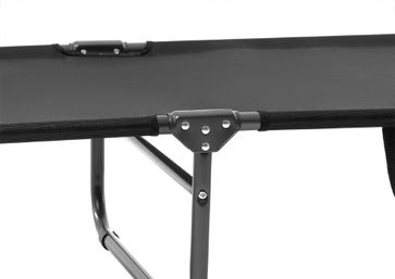 Могофункциональный предмет мебели. В отличие от шезлонга на ней можно не только загорать и отдыхать на свежем воздухе, но и использовать ее как дополнительное спальное место как на даче, так и в городе. Раскладушку можно хранить на открытом воздухе в течение всего сезона так как сиденье сделано из сетчатого материала TEXTILENE устойчивого к ультрафиолетовому излучению и образованию плесени. Благодаря своей структуре материал не впитывает влагу, быстро сохнет и очень простой в уходе. 3-х позиционная регулировка наклона спинки позволяет принять наиболее комфортное положение. В сложенном состоянии не занимает много места, имеет удобные лямки для переноски.