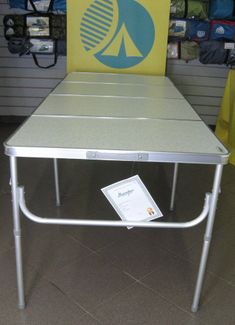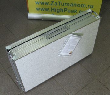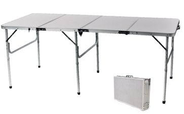 Уникальность стола Canadian Camper CC-TA483 заключается в минимальных размерах в сложенном виде. При габаритах столешницы 180 на 80 см в сложенном виде он представляет собой чемодан всего 82 на 40 см. Достигается это за счет уникальной конструкции столешницы. Она складывается в 4 раза, не теряя при этом жесткости. Каждая часть столешницы имеет дополнительную поддержку, состоящую из металлической пластины, закрепленной в корпус. В разложенном виде все части стола скрепляются между собой крючками. Материал столешницы ламинированный МДФ. Максимальная нагрузка на стол 40 кг. Модель можно использовать в двух положениях. Низкий стол, высотой всего 36 см, или как полноценный обеденный стол высотой 70 см. Дополнительные ножки крепятся при помощи защелок, каждая из них имеет пластиковое окончание, препятствующее повреждению поверхности пола. Конструкция очень просто раскладывается и собирается. Каркас выполнен из алюминия, за счет этого вес стола не превышает 9 кг. Для обеспечения устойчивости стола, на каждой из трех ножек установлены перекладины. Стопорные механизмы не позволяют столу произвольно сложиться во время использования. None