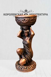 Девушка с чашей на голове, изготовленная из высокопрочного архитектурного бетона. Этот материал предназначен для уличного использования, не боится жары и перепадов температуры. Возможно исполнение в различных цветах — белый, золотой, бронзовый. Прокраска в массе. В чаше имеется дренажное отверстие для вывода влаги.