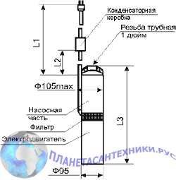 Электронасос бытовой центробежный погружной многоступенчатый БЦПЭ "Водолей"предназначен для подачи воды в бытовых условиях из скважин внутренним диаметром от 110 мм и более и может использоваться также для подачи воды из шахтных колодцев, резервуаров и открытых водоемов для полива садов и огородов. Погружной насос Водолей Евро-1 рекомендуется применять для воды не более 35°С. Не допускается перекачивание загрязненных, щелочных, кислотных жидкостей и растворов. Вода не должна содержать большого количества песка, других видимых механических примесей и иметь минерализацию более 1500 г/м3. Срок службы погружного насоса Водолей Евро-1 - не менее 10 лет, средняя наработка на отказ - 10 000 часов. Погружной насос состоит из однофазного электродвигателя переменного тока и многоступенчатой насосной части, выполненных в виде моноблока, а также выносной конденсаторной коробки, закрепленной на шнуре питания с вилкой. Электродвигатель состоит из ротора, статора, шарикоподшипников и заполнен экологически чистым маслом. Насосная часть состоит из корпуса, в котором находятся приводной вал, колеса рабочие, лопаточные отводы, направляющие кольца. В верхней части насоса расположена крышка с внутренней трубной резьбой G1" . Крышка имеет две проушины для крепления электронасоса тросом. Расположение электродвигателя за насосной частью исключает попадания масла в перекачиваемую воду. В электронасос встроено тепловое реле немецкой фирмы Thermik, эффективно защищающее электронасос при критических режимах эксплуатации. Соединение электронасоса с питающей сетью осуществляется посредством шнура с вилкой, имеющей заземляющий контакт, и розетки с заземляющим контактом. None