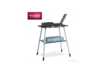 Презентационный стол для проектора. Прочный и надежный стол для проектора (портативный) со столешницей и полкой. Идеально подходит для мобильных презентаций. Складная конструкция хорошо продумана, красива и функциональна. Большая столешница позволяет удобно расположить рядом проектор и ноутбук. В собранном виде столик очень устойчив благодаря трапециевидному расположению легких алюминиевых ножек. Столешница покрыта черным элегантным и нескользящим материалом, имитирующим кожу. Винтовой замок для фиксации телескопически удлиняемых ножек выполнен из высокопрочного пластика, концы ножек "обуты" в резиновые наконечники, дабы избежать скольжения и повреждения пола. Конструкция быстро и легко собирается и разбирается за 2 минуты. Ножки быстро вкручиваются в специальные гнезда под столешницей, высота каждой ножки фиксируется на нужной длине винтовым закручивающимся замком. Нижняя полка прочно закрепляется на крючках одним движением руки. В собранном виде ножки вправляются в пазы на обратной стороне столешницы. Столешница с закрепленными на ней ножками снабжена ручкой, и похожа на большой и солидный кожаный портфель. Красиво смотрится, удобно переносить. Габариты столика в рабочем положении (длина по размаху ножек х ширина по размаху ножек х высота), см: 79 х 57 х 79 (при отрегулированной минимальной длине ножек), 99 х 79 х 140 (при отрегулированной минимальной длине ножек). Габариты столешницы (Ш х Г х В), см: 65 х 45 х 2. Габариты нижней полки (Ш х Г х В), см: 42 x 45 х 2. Грузоподъемность столика с установленной полкой при высоте столика 78 см: 70 кг. Грузоподъемность столика с установленной полкой при отрегулированной высоте столика более 79 см: 20 кг. 10 Грузоподъемность нижней полки: 10 кг. Габариты столика–портфеля в собранном виде (Ш х В х Г), см: 79 х 45 х 6. None