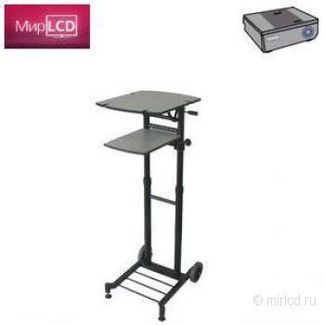Презентационный стол для проектора. Проекционный столик на колесах Galant для проекторов предназначен для использования на конференциях, симпозиумах, в выставочных инсталляциях. Встроенная пневматическая пружина позволяет легко регулировать высоту, обеспечивая установку проектора на необходимом для максимально комфортного просмотра уровне. Две складывающиеся полки позволяют установить на столике как проектор, так и ноутбук, а также презентационные аксессуары или документы. Нижняя полка может поворачиваться и регулироваться по высоте. На стальную раму нанесено черное порошковое покрытие, придающее защиту от ржавчины и царапин; полки окрашены в светло-серый цвет. Большие практичные колеса позволяют легко перемещать столик с оборудованием. Нагрузка на полки, кг 10 / 5. Наклон, градус 10. Высота полок, см 89-125 / 72-108. Размер полок, см 35 x 42 / 24 x 36. Вес, кг 13. None