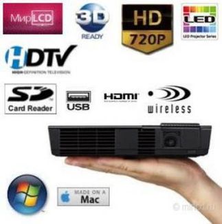 Портативный проектор 3D. 3D Проектор портативный, короткофокусный 3D HD 720p для офиса, домашнего кинотеатра и игр с беспроводным Wi-Fi, USB и SD кард-ридером. Светодиодный источник света (лампа не требуется). 3D Ready через DLPLink. Родное разрешение WXGA (1280 x 800) разрешение и отображение до 1920 x 1080 (HDTV / 1086 i). Яркость 500 ANSI люмен. Контрастность 4 000:1. Инновационная светодиодная технология в ультракомпактном и легком формате и стильным дизайном. Модель L51W LED является профессиональным мобильным проектором с широкими возможностями подключения, а также интегрированной программой Office Viewer для презентаций без помощи компьютера. Очень низкая совокупная стоимость владения достигается за счет низкого энергопотребления и 20 000 часового срока службы источника света. Идеальное решение для мобильных и корпоративных приложений, а также для перекрестного использования (частного/профессионального). Простота эксплуатации благодаря автоматической коррекции трапецеидальных искажений (Keystone) и автоматическому обнаружению входного сигнала. Очень компактный и легкий благодаря инновационной светодиодной технологии. Уменьшенный по максимуму минималистский дизайн со всеми возможностями подключения. Широкий формат для наслаждения пространством при проведении презентаций и воспроизведении видеосодержания в оригинальном формате изображения никакого ухудшения качества благодаря масштабированию изображения. Беспроводная презентация запуск презентаций и слайд-шоу в беспроводном режиме с помощью смартфона, планшета или ПК. Бесплатная лицензия для DisplayNote Presenter презентации, предоставление информации, совместная работа с множеством участников путем использования различного оборудования. 1 GB встроенной памяти. SD кардридер. Автоматическая и ручная вертикальная коррекция трапецеидального искажения (V= ±40°). Автоматическая функция включения. Блокировка клавиатуры. Дисплей USB. Корректировка цвета стен вручную. Крышка объектива. Опциональная беспроводная ЛВС. Ра