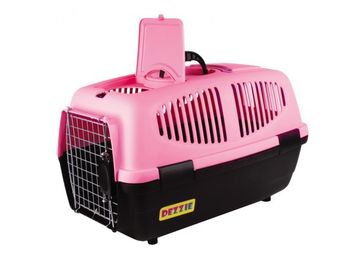 Переноска для животных. Состоит из поддона, крыши с прорезями для доступа воздуха, боковой решетки-дверки и удобной ручки.