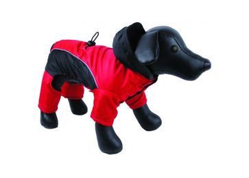 Комбинезон стеганый с мягкой, теплой флисовой подкладкой. Предназначен для использования в прохладную, ветреную погоду. Рукава на передние и задние лапы, застежка на липучках. Фиксирующая резинка для более плотного облегания талии. 100% полиэстер, стирать в холодной воде, не выжимать.