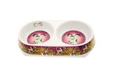 Миска для собак двойная с ярким рисунком с внешней стороны и на дне. Имеет резиновые антискользящие вставки.Миска DEZZIE для собакОбьем: 2 х 450 млРазмер: 33 х 18,5 х 5,5 смМатериал: пластик None Возможен самовывоз. Есть доставка.