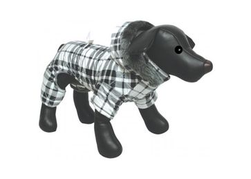 Комбинезон стеганый из болоньевой ткани с мягкой теплой флисовой подкладкой предназначен для использования в холодную и сырую погоду. Рукава на передние и задние лапы, застежка на “липучках”. Капюшон с оторочкой из искусственного меха. Регулируемая талия. 100% полиэстер, стирать в холодной воде, не выжимать.