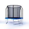 В комплекте с батутом поставляется двухступенчатая лестница. Цвет мата батута — черный, подушки безопасности и стойки — синий. Подушка безопасности находится снаружи защитной сетки. Ножки батута и вертикальные стойки, которые держат сетку, сделаны из оцинкованной стали. Мат батута — полипропилен, подушка безопасности сверху ПВХ, снизу нетканный материал, внутри — поролон, обмотка стоек — ПВХ, сетка — полиэтилен, верхнее кольцо батута — стекловолокно.