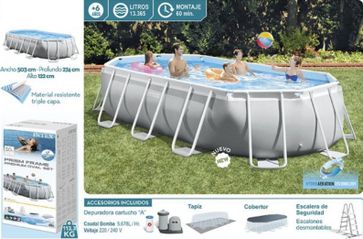 - Бассейн каркасный 503х274х122см, Prism Frame Pool Oval (ромб), фильтр насос 5678 л ч, лестница, тент, подстилка Intex 26796 по выгодной цене 47 970 р. руб.;