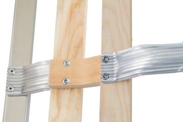 Лестница для крыши из алюминия и дерева, 16 перекладин: прочные изогнутые, скруглённые перекладины из алюминия или бука; боковины из многослойной водостойкой клееной древесины; постоянный контроль качества; фиксация лестницы перекидной скобой на коньке при выполнении монтажных работ без использования крышных крюков для крепления лестниц; угол наклона крыши не более 750 NB: соединительный уголок для лестниц для крыш перебрасываемая дуга None