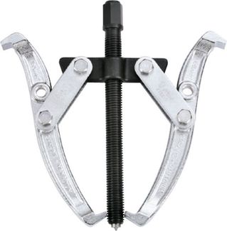 Универсальный съемник с двумя поворотными двусторонними захватами. Предназначен для демонтажа различных деталей, благодаря возможности перестановки захватов по глубине и по направлению захвата детали (внутренний или наружный). Захваты изготовлены из хромованадиевой стали путем ковки. Ходовой винт изготовлен из хромомолибденовой стали. None