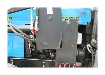 Навеска или отсоединение погрузчика от трактора – в течении 2-3 минут без использования инструмента.Входящий в базовую комплектацию суппорт (рама навески рабочих органов) позволяет за 1 минуту сменить рабочий орган (ковш, вилы и т.д.) без применения инструмента.Надежное запирание рабочего органа производится лёгким поворотом рукоятки замка. Механический параллелограмм обеспечивает максимальную параллельность подъёма поддонов и закрытого ковша. Для защиты погрузчика и трактора от перегрузок в гидросистеме предусмотрен клапан избыточного давления. Присоединение гидроподъёмника к гидросистеме трактора осуществляется гидравлическими быстросъемными штекерами без использования инструмента. Механизм присоединения панелей гидроподъёмника к опорной раме с клиновым затвором обеспечивает длительную и надёжную работу без люфта.