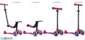 Закажите 462-132 Самокат GLOBBER EVO 4 in1 TITANIUM с 3 светящимися колесами Neon Pink у компании Jetem24.ru в России на портале Alloy: