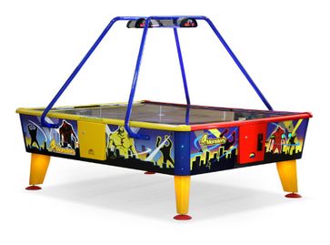 Оборудован светильником над игровой поверхностью, мощным компрессором, электронным счетчиком очков со звуковым сопровождением.