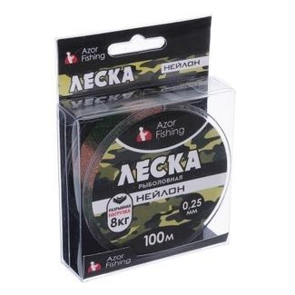 - AZOR FISHING Леска, нейлон, камуфляж, 100м, 0,25мм, разрывная нагрузка 8кг по выгодной цене 347 р. руб.;
