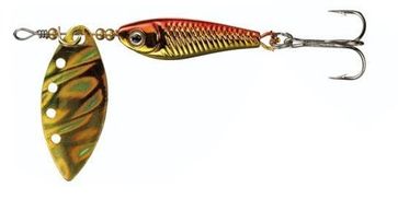 Блесна DAIWA Silver Creek Spinner-R 1150 Holo Akakin - фантастически уловистые вращающиеся блесны с тяжелым сердечником в форме рыбки. Как показала практика, они одинаково хороши при ловли абсолютного большинства видов рыб, включая и тех, которых принято считать мирными. S.C. SPINNER – R допускают любую скорость проводки независимо от глубины и силы течения. Блесны показали великолепные результаты практически на всех типах водоемов, от горных рек с быстрым течением до прудовых форелевых хозяйств. Достаточно большой вес при небольших габаритах делают S.C. SPINNER – R незаменимыми в условиях, когда требуются сверхдальние забросы. Приманки можно использовать без вертлюжка, так как они имеют сердечник со смещенным центром тяжести. За счет этого он выполняет роль киля, позволяющего лепестку спокойно вращаться вокруг своей оси. Блесны оснащены острыми крючками и имеют специальное покрытие. Рекомендованы для ловли окуня, жереха, язя, головля, форели и хариуса. None