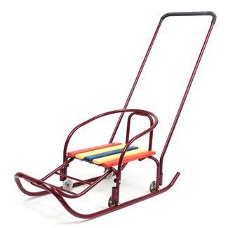 Закажите ДиМ Санки детские ВЭЛ-2К (4 колеса, подножка, толкатель на 2 стороны, круглый полоз) вишня ВЭЛ-2К вишня у компании КИНДЕРСПБ.РУ в России на портале Alloy:
