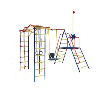 Характеристика Бренд: Пионер Страна происхождения: Россия Способ установки: цементируются «стаканы» Материал: металл Высота: 2,20 м Занимаемая площадь: 3,20 х 2,30 м Диаметр трубы: 38 мм Толщина металла: 1,5 мм Диаметр ступени: 25 мм Ширина ступени: 0,49 м Шаг ступени: 0,26 м Тип ступени: металл Допустимая нагрузка: 100 кг Допустимая нагрузка на турник: 100 кг Допустимая нагрузка на навесное оборудование: 50 кг Комплектация: канат, кольца, качели на подшипниках со спинкой Вес комплекса: 108 кг Упаковка: картонная коробка Размеры упаковки (ДхШхВ): 1 место 2,41 х 0,22 х 0,08 м 2 место 2,08 х 0,33 х 0,11 м 3 место 1,06 х 0,88 х 0,11 м 4 место 1,60 х 0,41 х 0,05 м Возрастная категория: 3+ None