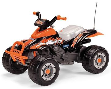 Квадроцикл " CORRAL T-REX" ( Корал т-рекс) / Peg-perego.Квадроцикл с одним посадочным местом для детей от 3 до 8 лет. Максимально допустимая нагрузка - 40 кг. Две скорости вперёд. Одна назад.Два ведущих колеса. Два двигателя. Максимальная скорость до 6.3 км/час. Электромобиль способен преодолевать подъёмы до 10 градусов.Акселератор и тормоз совмещены в одной педали. Пластмассовые колёса с крупным протектором. Аккумулятор 12 В. Время работы батареи без подзарядки по ровной дороге с максимальной нагрузкой составляет 60 мин. Электромобиль изготовлен из экологически чистого пластика. Размеры 102x65x64 см.Вес 15.5 кг.Страна: Италия. Фирма-производитель: Peg-Perego Минимальная сумма заказа 500 руб.