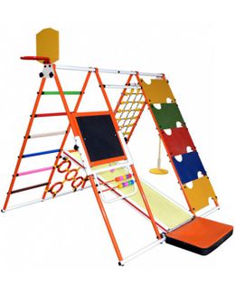 ДСК Формула здоровья Вершинка W оранжевый/радуга - складная модель для помещений и улицы. Предназначена для детей от 2 до 7 лет. Включает лестницу, сетку для лазания, тарзанку, панель с отверстиями, лестницу-кольца, двухсторонний мольберт со счетами, горку, баскетбольное кольцо и мат. Наличные, Visa/MasterCard, Яндекс.Деньги, WebMoney Возможен самовывоз. Есть доставка.