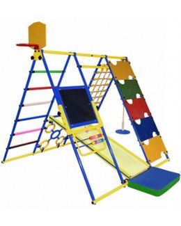 ДСК Формула здоровья Вершинка W синий/радуга - складная модель для помещений и улицы. Предназначена для детей от 2 до 7 лет. Включает лестницу, сетку для лазания, тарзанку, панель с отверстиями, лестницу-кольца, двухсторонний мольберт со счетами, горку, баскетбольное кольцо и мат. Наличные, Visa/MasterCard, Яндекс.Деньги, WebMoney Возможен самовывоз. Есть доставка.