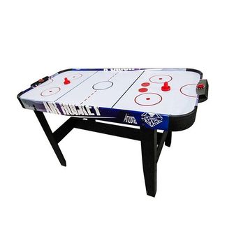 Настольный хоккей является отличным развлечением дома или на даче. Игровой стол будет не только отличной покупкой для себя, но и прекрасным подарком. Игра в настольный хоккей очень эмоциональная, захватывающая и проходит на больших скоростях. Почувствуйте звуки и атмосферу знаменитой и популярной игры! Стол оборудован 2 механическими счетчиками для подсчета очков. Комплектуется набором аксессуаров: 2 биты и 2 шайбы. Корпус выполнен из специально обработанного МДФ, сверху покрытого пленкой ПВХ. Мощный компрессор подает воздух через отверстия. Напряжение: 220В Размеры стола: 137,1 х 68,6 х 79,4 см Размеры упаковки: см Вес: 16 / 18 кг Производитель: DFC Страна производства: Китай Гарантия: 12 месяцев Минимальная сумма заказа 500 руб.
