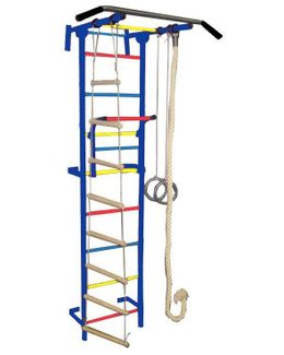 Спорткомплекс Крепыш плюс Г пристенный синий имеет расширенные возможности обычной шведской стенки. В комплект входят канат, кольца, турник.