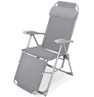 Кресло-шезлонг предназначено для использования в качестве индивидуальной трансформируемой мебели для отдыха сидя и полулежа на открытом воздухе и в помещении. Имеет подножку, меняющую положение в зависимости от спинки. Ткань чехла не боится воды, легко чистится моющими средствами и устойчива к загрязнениям. Характеристики: • 8 положений спинки • удобная подставка под ноги • съемный подголовник • высота до сиденья 470 мм • размер сиденья 370х455 мм • допустимая нагрузка 100 кг • цвет каркаса – черный, серый • цвет чехла – в ассортименте • в крайнем положении сидя (ДхШхВ): 820x590x1160 мм • размер изделия в сложенном виде (ДхШхВ): 1100x590x140 мм • вес изделия 6,4 кг Минимальная сумма заказа 500 руб.