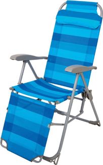 Кресло-шезлонг предназначено для для отдыха сидя и полулежа на открытом воздухе и в помещении. Имеет подножку, меняющую положение в зависимости от положения спинки. Восемь положений спинки. Эргономичные подлокотники. Регулировка подушки-подголовника. Ткань чехла не боится воды, легко чистится моющими средствами и устойчива к загрязнениям. Удобное в обращении. В сложенном виде занимает минимум места. Характеристики: • в крайнем положении сидя (ДхШхВ): 820х590х1160 мм • сложенное положение (ДхШхВ): 1100х590х140 мм • высота до сиденья: 470 мм • размер сиденья: 370х455 мм • допустимая нагрузка: 100 кг • количество штук в упаковке: 1 • вес: 6,40 кг Минимальная сумма заказа 500 руб.