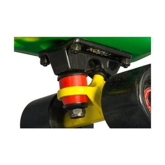 Яркая и «сочная» модель из коллекции круизеров 2017 года. Трендовое сочетание дерзких оттенков и технология rubber painting, создающая бархатно-матовое защитное покрытие, производят неизгладимое впечатление на представителей как мужской, так и женской аудитории. Классический размер пластиковой деки позволит оттачивать мастерство управления доской за счёт комфортной флексовости, усиленная алюминиевая подвеска c полиуретановыми бушингами обеспечат маневренное управление круизером. Качественные подшипники ABEC SEVEN Chrome гарантируют быстрый разгон и стабильный накат, а полиуретановые колеса компенсируют неровности различных поверхностей. Характеристики: Дека: Материал: пластик Размер, дюймы: 22x6 Вес, гр: 750 Цвет: красный/желтый/зеленый Подвеска: Материал: алюминий, усиленная, 3.25 Вес, гр: 300 Цвет (база/кронштейн): черный/желтый Болты: Материал: алюминий анодированный Цвет: черный Бушинги: Материал: PU Жесткость: 85А Цвет: красный Колеса: Материал: PU Размер, мм: 60х45 Жесткость: 78А Цвет: черный Подшипники: ABEC-7 Сhrome Сепаратор: хромированная сталь i1018 Шилдинг: металлический, в цвет бушингов, с принтингом Abec Seven Chrome Упаковка: полукоробка-подставка цветная Производство: КНР Максимальный вес пользователя, кг: 110 1018 Универсальный надежный материал. Подшипники из хромированной стали устойчивы к коррозии и способствуют достижению хорошего наката. Вес : 2.166 кг. Минимальная сумма заказа 500 руб.