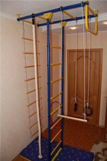 ДСК сине-желтый Т-01 М Лидер устанавливается враспор между полом и потолком. Сделан из металла. Есть турник, канат, кольца, веревочная лестница и трапеция. Наличные, Visa/MasterCard, Яндекс.Деньги, WebMoney Возможен самовывоз. Есть доставка.