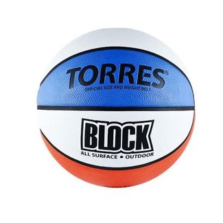 - Мяч баскетбольный TORRES Block р.7 резина, бело-сине-красный по выгодной цене 830 р. руб.;