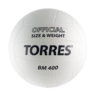 Мяч волейбольный любительский TORRES BM400. Мягкая синтетическая кожа (термополиуретан), армирование камеры синтетической тканью, клееный (технология TSBE), 18 панелей, бутиловая камера с бут. ниппелем. Размер 5. Рекомендован для игры в зале и на улице. Вес 260-280гр. Длина окружности 65-67см. Черно-белый.