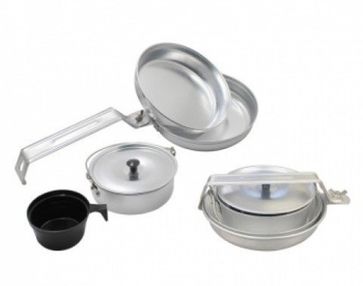 Набор посуды из 4 предметов подходит для туристического похода и кемпинга. Набор очень компактен и прост в использовании. Благодаря разъемной ручке элементы набора удобно складываются один в один. Полноценная ручка с фиксатором позволяет удобно держать посуду при готовке и употреблении пищи. Материал посуды отличается прочностью и долговечностью. В комплекте: Сковорода с разъемной ручкой: диаметр - 17.5 см., высота - 3 см. Миска глубокая с плоским дном: диаметр - 16.5 см., высота - 3 см. Котелок с крышкой и ручкой для подвеса: диаметр - 13.5 см., высота - 4,2 см. Кружка, пластик: 240 мл. Общий вес набора: 225 гр. None