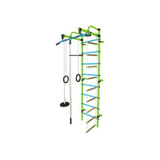 Размер: 2260755525 ммХарактеристики:Страна производитель: РоссияКомплектация: Баскетбольное кольцо, веревочная лестница, канат, кольца гимнастические, тарзанкаТип упаковки: Коробка картонная, пленка полиэтиленРазмеры упаковки: 1150×250×140 ммОбъем: 0,895 м3Вес: 27,15 кгТип установки: пристенныйРегулировка турника по высоте: от 1715 до 1975 ммХват турника: широкийПерекладины: ОбрезиненныеШирина металлической перекладины: 450 ммШирина турника: 950 ммНагрузка на навесное оборудование: 80 кгНагрузка на металлическую конструкцию: 100 кгДлина крепежа (расстояние от стены до стоек):115 ммРасстояние между ступенями: 260 ммДиаметр ступени: 25 ммДиаметр трубы: 38 ммГарантия: 1 месяцСреди огромного разнообразия спортивных комплексов «Лира-Плюс» отличается своим элегантным дизайном, яркие цветовые оттенки и комплектация вызовет восторг у любого взрослого и ребенка. В комплект ДСК «Лира» входит цельный турник своеобразной конструкции с дополнительными ручками, а также «тарзанка», веревочная лестница, канат и баскетбольное кольцо. Комплексы разработаны на основе регулярных опросов родителей, торговых сетей и детских центров, поэтому полностью соответствуют всем запросам ребенка. Кроме того, наличие дополнительных аксессуаров, дает возможность создать комплекс индивидуально под каждого ребенка. Покупая шведскую стенку в нашей оптовой компании, ребенок сможет осуществлять утреннюю зарядку и ежедневные тренировки, не выходя из дома, а так же поможет тем малышам, которые сейчас малоподвижны или слабы, обрести ловкость, силу и здоровье.Конструкция надежно монтируется на стене посредством стальных крепежных элементов и занимает минимум площади, системы крепления выполнены таким образом, что выдерживают нагрузки не только от одновременной игры 3-4 детей, но и взрослого. Благодаря разборной конструкции, комплекс легко может быть перенесен в любое удобное для Вас место (другую комнату, другую квартиру, двор, дачу) и не потребует каких-либо строительно-монтажных работ. В дальнейшем есть