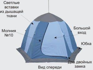 Палатка рыбака Нельма 2 (автомат) отличается эргономичным дизайном и разработана на быстроразборном каркасе зонтичного типа, выполненного из высококачественного материала (дюралевый пруток марки В-95Т1), что обеспечивает необходимую устойчивость и удобство эксплуатации. При изготовлении тента данного изделия использовано сочетание тканей-компаньонов, обладающих водоотталкивающими свойствами, необходимой гигроскопичностью и светопроницаемостью (Оxford 240T PU 2000 мм), что обеспечивает комфортные условия для проведения зимней рыбалки, исключая появление конденсата внутри палатки. Она разработана с учетом всех требований безопасности и комфорта рыбака, предъявляемых к зимней палатке. В итоге модель получила простоту и легкость в обслуживании и при транспортировке. Палатка в собранном виде находится в удобной сумке-переноске из той же ткани, из которой сшита палатка. Яркий купол делает палатку заметной. Для безопасности в темное время суток палатка оснащена светоотражающими элементами. Петли для оттяжки позволяют надежно укрепить палатку на льду, что особенно важно, когда погода ветреная. Палатка также имеет клапаны для вентиляции, большую дверь на молнии, внутренние карманы для хранения рыболовных принадлежностей и пластиковую петлю под куполом, чтобы подвесить фонарь. Применение замкнутой юбки с внешней стороны (ширина 20 см) обеспечивает плотное соединение с поверхностью и предохраняет от влияния внешних факторов. Вентиляционный клапан, расположенный напротив входа, обеспечивает дополнительный приток воздуха. Палатка имеет доступную цену, обладая при этом всеми необходимыми для зимней рыбалки характеристиками. Палатка легко собирается и разбирается силами одного человека. None
