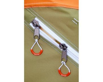 Палатка рыбака Нельма-Куб 1 отличается оригинальным дизайном. Оранжевый верх купола палатки виден издалека днем и хорошо замечен ночью (при горящем фонаре, лампе, свече). Прочный каркас из из дюралевого прутка диаметром 8 мм. обеспечивает долговечность и прочность палатки, а ткань Oxford 240T 2000PU с водоотталкивающей пропиткой необходимую защиту от ветра и осадков. Светлая ткань по центру стенки палатки обеспечивают отличное освещение внутри в снегопад и пасмурную погоду. Светоотражающие элементы на стенках издали видны в свете фар снегоходов и автомобилей даже при отсутствии внутренней подсветки. Четыре прочные петли оттяжки на стенах палатки и четыре петли по углам юбки позволяют надежно закрепить палатку на льду. Широкая замкнутая юбка полностью исключает поддув холодного воздуха снаружи. Углы палатки из немаркой ткани темных оттенков. Имеются несколько вентиляционных окон: два под куполом для выхода угарного газа, нижние для обеспечения конвекции воздуха. Два больших обзорных окна, закрывающиеся изнутри шторкой на молнии и снабженных отстегивающейся на липучке морозостойкой оконной пленкой. Смотрите нашу презентацию по палаткам рыбака Нельма-Куб 1 и 2 в формате PDF! None
