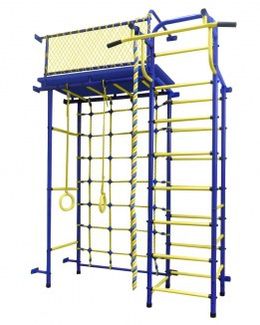 Сине-желтый детский спортивный комплекс Пионер 10С с крепление к стене. Кроме классической металлической лестницы в него входит мягкий канатный лаз, навесной канат и кольца. Наличные, Visa/MasterCard, Яндекс.Деньги, WebMoney Возможен самовывоз. Есть доставка.