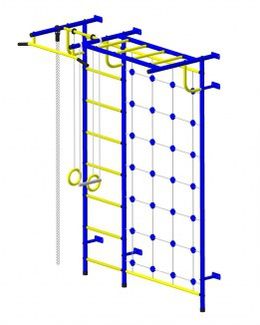Сине-желтый ДСК Пионер-С4СМ для активных детей и их родителей. Крепится к стене. Есть веревочный лаз. Перекладины в этой модели обтянуты ПВХ-материалом. Наличные, Visa/MasterCard, Яндекс.Деньги, WebMoney Возможен самовывоз. Есть доставка.