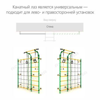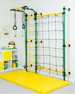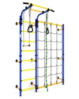 Спорткомплекс Romana Карусель S3 сине-жёлтый состоит из сетки для лазания, каната, гимнастических колец, турника, металлической лестницы. Пристенный механизм фиксации.