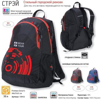 Рюкзак Nova Tour Стрэй 30 это облегченный городской рюкзак с органайзером, карабином для ключей и боковыми карманами из сетки. None