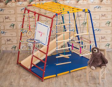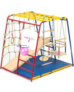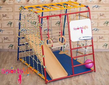 Спортивный комплекс Sportswill Baby Hit VIP - компактный ДСК для детей от 9 месяцев до 5 лет. Снабжен лестницами, горкой, рукоходом, тарзанкой, веревочной лестницей, качелями, трапецией, кольцами, сетью для лазания, матом и баскетбольным кольцом. Наличные, Visa/MasterCard, Яндекс.Деньги, WebMoney Возможен самовывоз. Есть доставка.