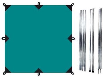 Тент Tramp 3x3 м со стойками высотой 3 м - идеальная защита от дождя и солнца, пригодится как на даче, так и в любых походах. Сделан из качественного материала 100% полиэстера, который не пропускает влагу. Углы усилены вставками из прочной ткани. Центр тента также усилен вставкой из прочной ткани. В комплекте с тентом идет 2 стойки высотой 3 метра, 8 оттяжек (3м) + 8 стальных колышков. None