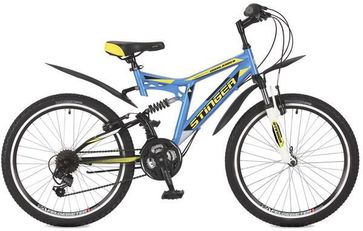 велосипед подростковый, горный (MTB) / кросс-кантри, двухподвесный, колеса 24", передний тормоз: V-Brake, задний тормоз: V-Brake, материал рамы: сталь Минимальная сумма заказа 500 руб.