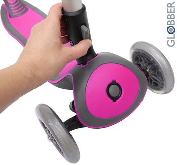 Розовый самокат Globber Y-Sco "Elite Sl My Free Fold up" со светящимися колесами - отличный вариант для детей 2-3 лет. Это своего рода переходной самокат от Midi к Maxi. Максимальная нагрузка, заявленная производителем - 50 кг. Цена со скидкой действует до 26 апреля Возможен самовывоз. Есть доставка.