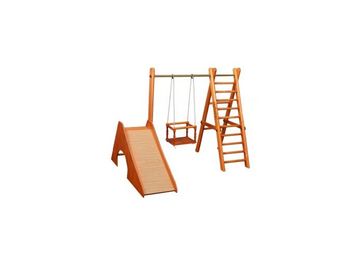 Домашний спортивный комплекс Kampfer Kitty - станет прекрасным подарком для малышей. Подходит для детей в возрасте от 7 месяцев до 4 лет, для устанавки в домашних условиях и в детских учреждениях. Конструкция была выполнена из натурального дерева, все края деталей немного скруглены обеспечивая большую безопасность для ребенка. Крепление: устанавливается на пол. Устойчивость конструкции обеспечивает угол раскоса стоек, комплекс можно передвигать с места на место. Комплектация: — шведская стенка — качели — горка Характеристики: Высота шведской стенки: 1,2 м Ширина шведской стенки: 64 см Ширина стойки лестницы : 10 см Общая длина по полу: 1,6 м Общая ширина по полу: 1,3 м Вес комплекса: 25 кг Допустимая нагрузка: 60 кг Размеры:1,2 х 1,3 х 1,6 м Размер упаковки: 1 место 1,3х0,6х0,25 м К каждому комплексу прилагается качественное подробное описание, схема и инструкция по сборке, поэтому все комплексы не сложно собрать собственными силами. Для большей безопасности советуем приобрести спортивный мат, который позволит защитить Вашего ребенка от ушибов и ссадин. Также есть возможность приобрести многое другое дополнительное оборудование, которое превратит Ваш ДСК в спортивный зал для всей семьи. None