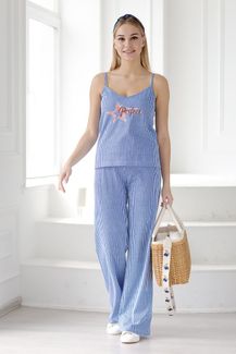 Брюки клеш из хлопка - Malibu | голубая полоска