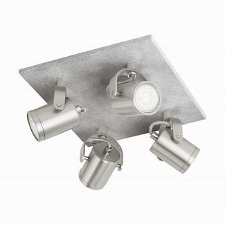 Бренд - Eglo (Австрия), Серия - Praceta, Длина, мм - 260, Ширина, мм - 240, Размер упаковки, мм - 292x576x553, Количество плафонов - 4, Масса нетто, кг - 1,8, Возможность подключения диммера - нельзя, Общее кол-во ламп - 4, Лампы в комплекте - светодиодные [LED] GU10, Лампы - светодиодная [LED], цоколь GU10; 220 В; 3.3 Вт, цвет: белый теплый, 3000 K, Цвет плафонов и подвесок - никель, Цвет арматуры - серый, Тип поверхности плафонов и подвесок - матовый, Тип поверхности арматуры - матовый, Материал плафонов и подвесок - дюралюминий, Материал арматуры - сталь, Класс электробезопасности - I, Общая мощность, Вт - 13, Степень пылевлагозащиты, IP - 20, Стиль - техно, Тип лампы - светодиодная [LED], Тип цоколя лампы - GU10, Напряжение питания лампы, В - 220, Максимальная мощность лампы, Вт - 3.3, Цветовая температура, K - 3000 K, Тип колбы лампы - полусферическая с рефлектором, Форма плафонов - цилиндрическая, Направление плафонов - любое, Диапазон рабочих температур - комнатная температура, Размеры, мм - 260x240, Страна производителя - Австрия, Дополнительные параметры - способ крепления светильника к потолку и стене - на монтажной пластине, поворотный светильник, Гарантия, месяцы - 24 Работаем круглосуточно!Возврат 21 день. Страна производства: Австрия Есть доставка.